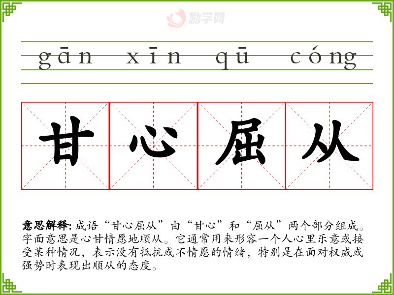 甘心屈从字义分解