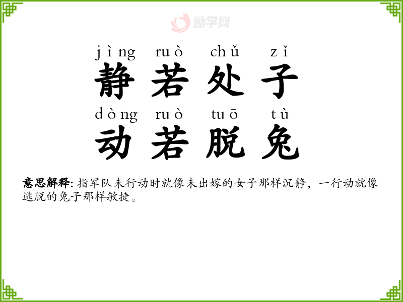 来源:是故始如处女,敌人开户;后如脱兔,敌不及拒。