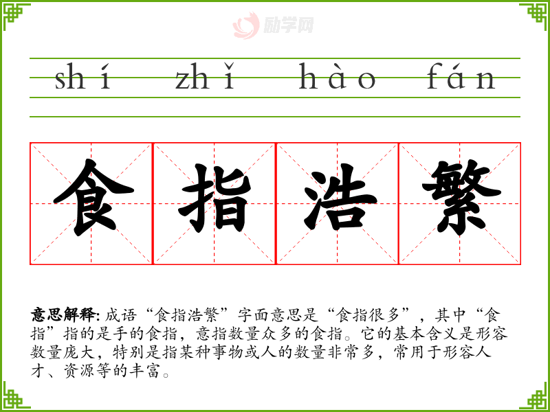 通过对“食指浩繁”的学,我认识到这个成语在表达数量和丰富性方面的独特之处。它不仅丰富了我的语言表达,也让我在生活中更好地理解和运用数量概念。在语言学中,掌握这样的成语能够提升我的表达能力和沟通效果。