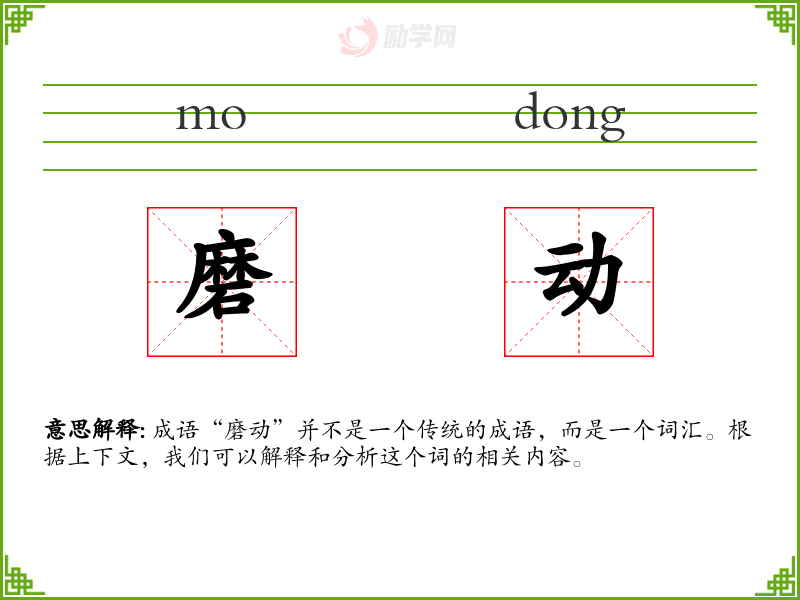 成语“磨动”并不是一个传统的成语,而是一个词汇。根据上下文,我们可以解释和分析这个词的相关内容。