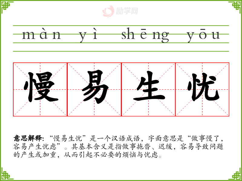 - 如果你今天不完成作业,明天的考试肯定会让你感到“慢易生忧”。
