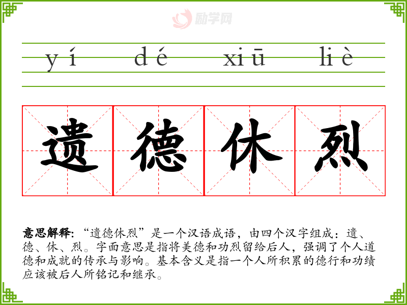 - 许多历史名人都以自己的遗德休烈影响了后世,成为后人学*的榜样。