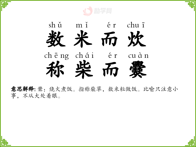 数米而炊,称柴而爨成语接龙
