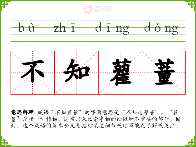 成语“不知藋蕫”的字面意思是“不知道藋蕫”。“藋蕫”是指一种植物,通常用来比喻事物的细微和不重要的部分。因此,这个成语的基本含义是指对某些细节或琐事缺乏了解或关注。