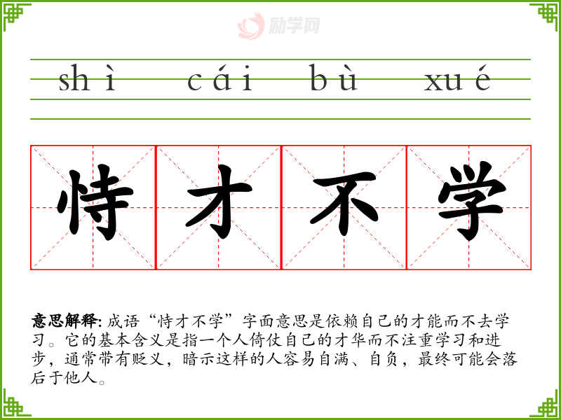 通过对“恃才不学”的学,我深刻体会到学的重要性和持续进步的必要性。在语言学和表达中,这个成语提醒我不断反思自己的学态度,不因一时的成就而自满,始终保持开放和学*的心态。