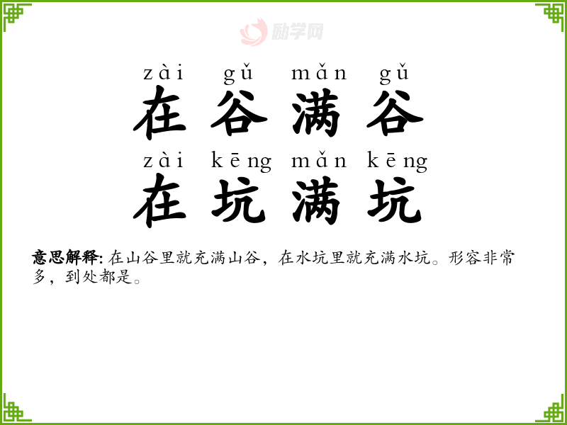 1. (会意。甲骨文字形,上面的部分象水形而不全,表示刚从山中出洞而尚未成流的泉脉;下面象谷口。“谷”是汉字部首之一。本义:两山之间狭长而有出口的低地,往往包含一个流域)。