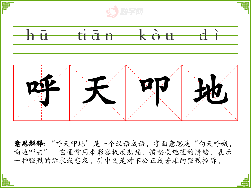 通过对“呼天叩地”的学,我更加理解了这种情感表达的深刻内涵及其在语言中的重要性。它不仅丰富了我的词汇量,也让我在表达情感时,能够更精准地传达复杂的情绪。这种表达方式在语言学和日常交流中都具有重要的实际价值。