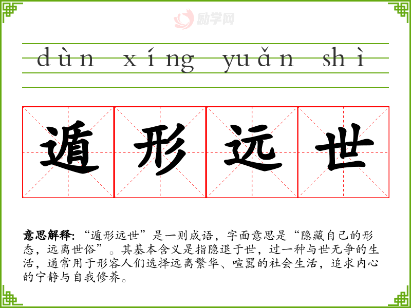 通过对“遁形远世”这个成语的学,我深刻体会到它在语言表达中的丰富性与深刻性。它不仅传达了隐退的生活理想,也反映了人们对内心宁静的渴望。这一成语的使用,在我的语言学和表达中,增添了更多的情感深度和文化内涵。