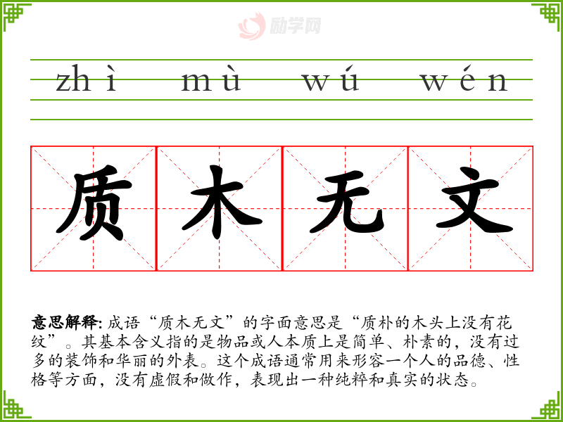 - “朴实无华”:强调事物简单而真实,没有华丽的装饰。
