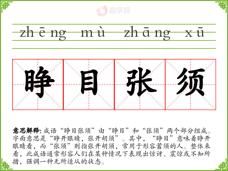 睁目张须字义分解
