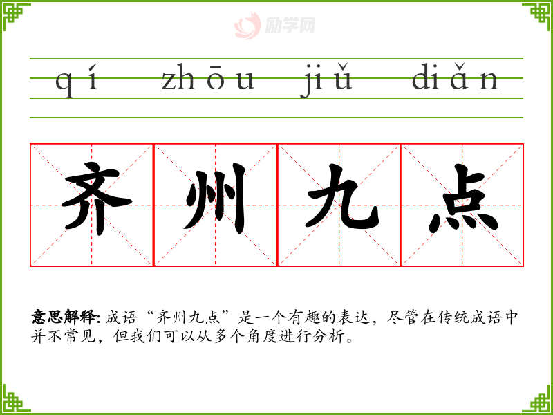 成语“齐州九点”是一个有趣的表达,尽管在传统成语中并不常见,但我们可以从多个角度进行分析。