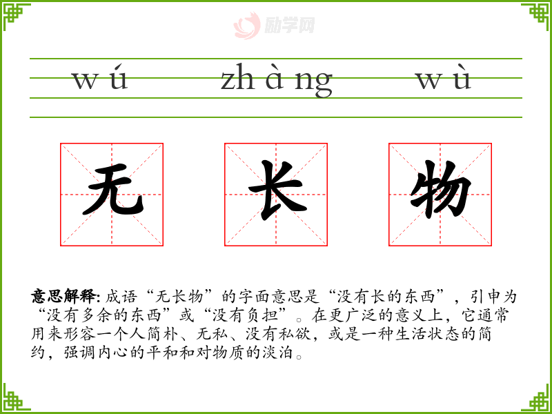 通过对“无长物”的学,我深刻理解了在物质丰富的时代,保持内心的简朴与宁静的重要性。这不仅是对传统文化的继承,也是在现代生活中寻找自我价值的方式。在我的语言学和表达中,“无长物”提醒我关注内在的丰富,而非外在的繁华。