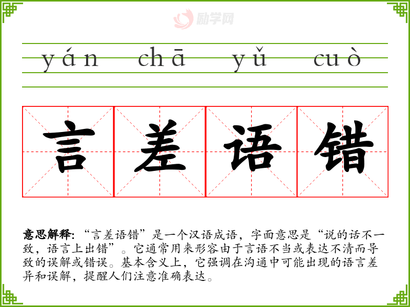 “言差语错”让我联想到沟通中的不安与挫败感,尤其是在重要场合时,因表达不清而导致误解的尴尬局面。这种情感反应使我更加重视在交流中选择合适的词汇和清晰的表达,避免不必要的误解。