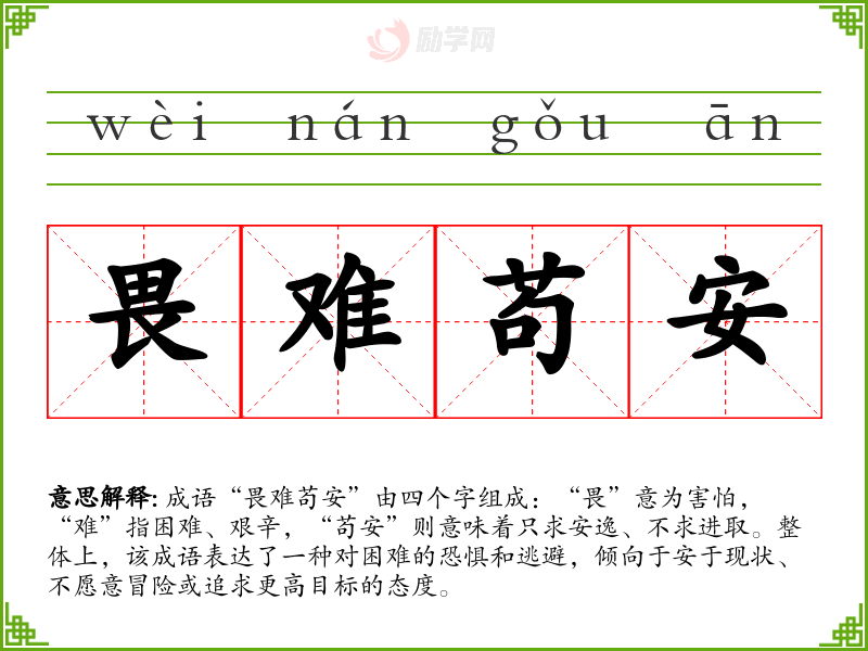 畏难苟安字义分解
