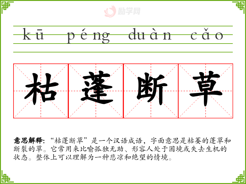 在生活中,我曾遇到一位朋友因事业失败而感到沮丧,我用“枯蓬断草”来形容他当时的状态,帮助他意识到这种情绪的普遍性,并鼓励他相信未来会有转机。