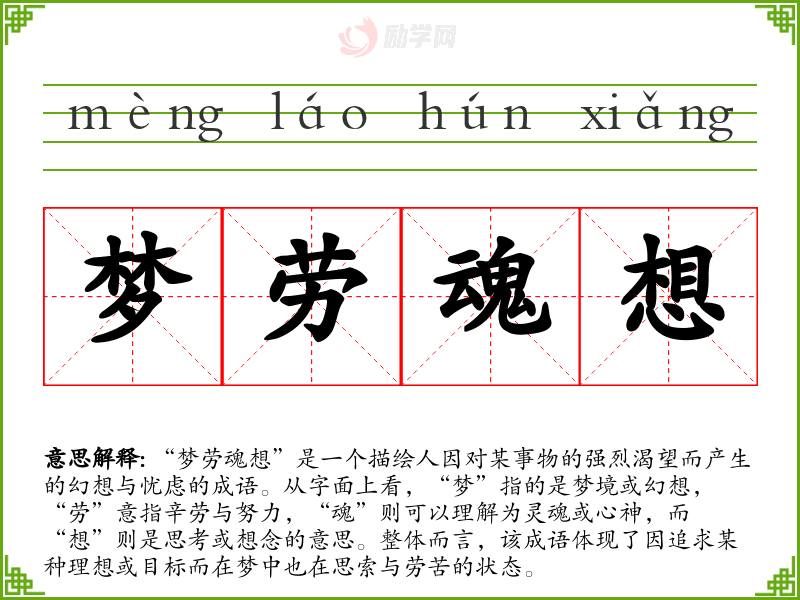 “梦劳魂想”并没有明确的历史典故,但它可以理解为反映了古代文人对理想追求的执着与内心的挣扎。在**古代文学中,许多文人都曾表达过类似的情感,常常在梦中追忆往事或思考未来。因此,这个成语可以看作是对这些情感复杂性的一个总结。