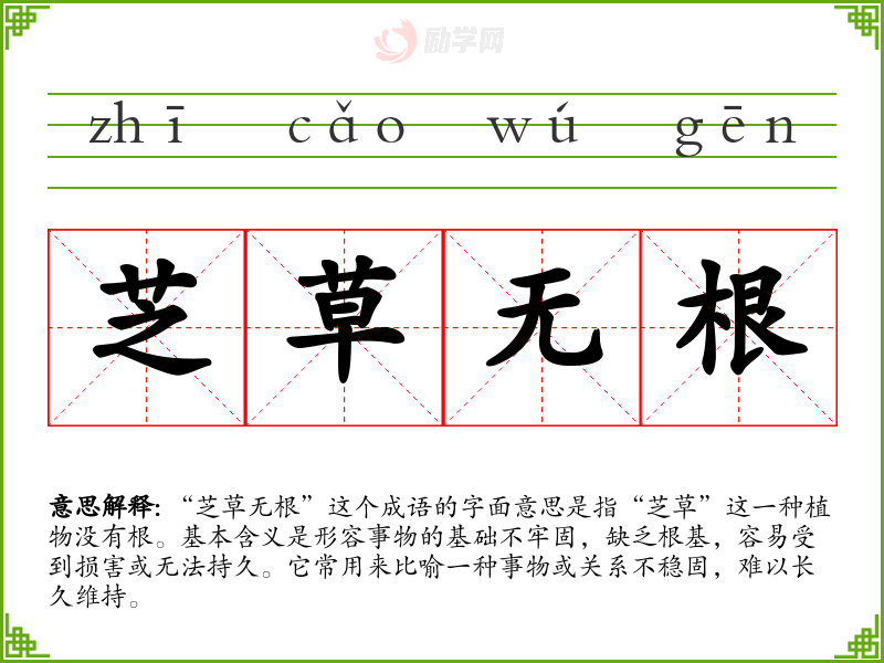 通过对“芝草无根”的学,我认识到它不仅仅是一个成语,更是一种对生活的深刻反思。它提醒我们在追求目标时,必须注重基础的扎实。这个成语在我的语言学和表达中也起到了警示作用,促使我在沟通中更加关注事物的本质与根基。