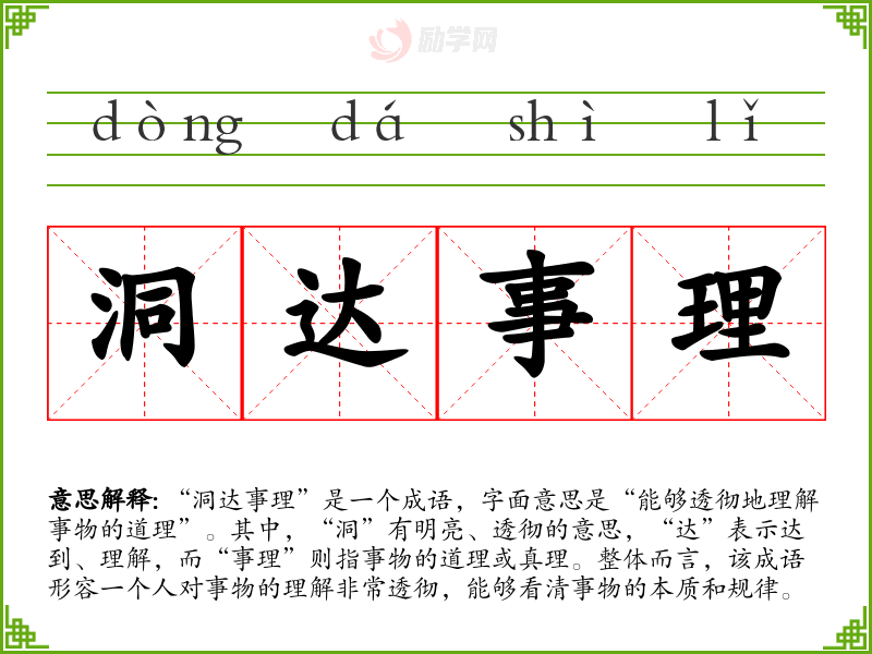 - 演讲:在正式场合,可以用来称赞某位演讲者或专家的见解,如“他的讲座让我们对这个复杂的问题洞达事理”。