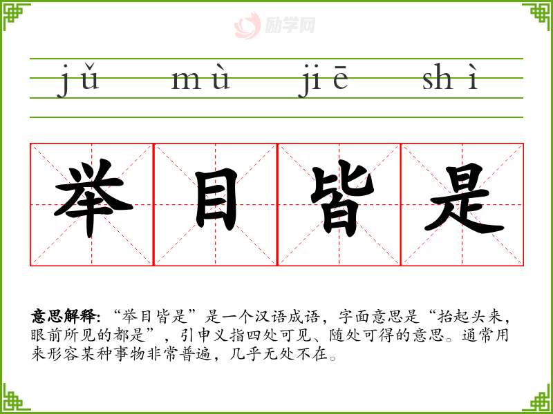 通过对“举目皆是”的学,增强了我对汉语成语的理解与运用能力。它不仅丰富了我的语言表达,还让我更深刻地感受到生活的多样性与美好。在语言学中,成语不仅是语言的装饰,更是文化的载体,值得深思与珍视。