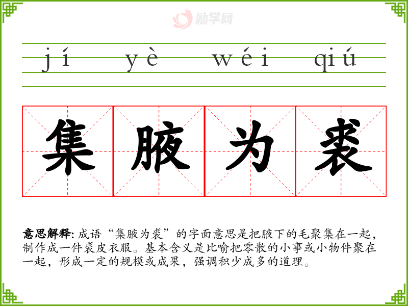 集腋为裘字义分解