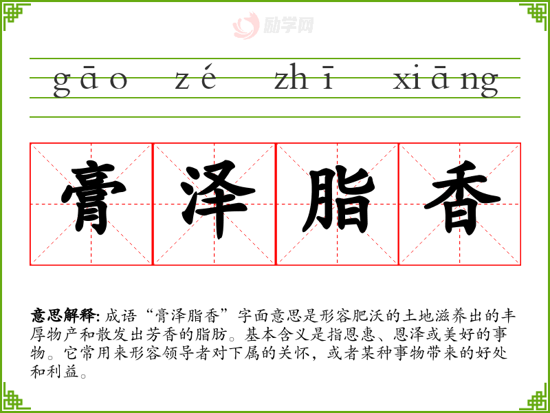 膏泽脂香成语接龙
