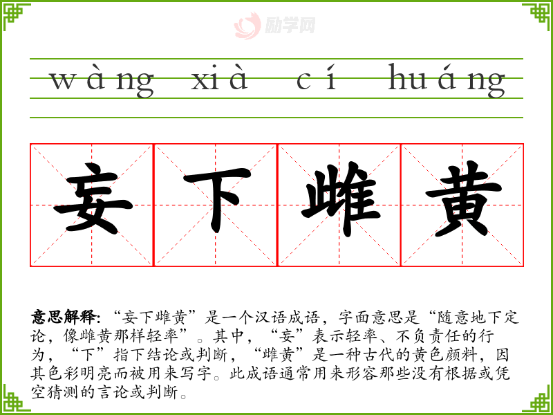 妄下雌黄字义分解