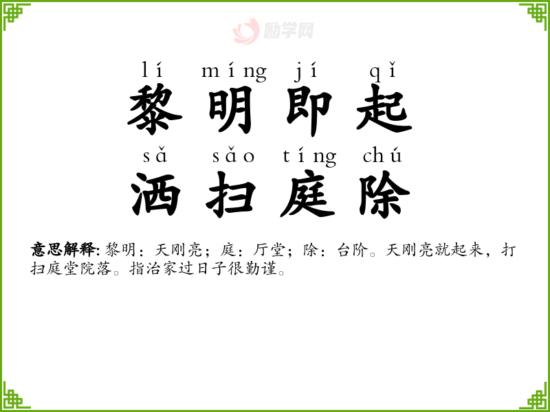 黎明即起,洒扫庭除字义分解