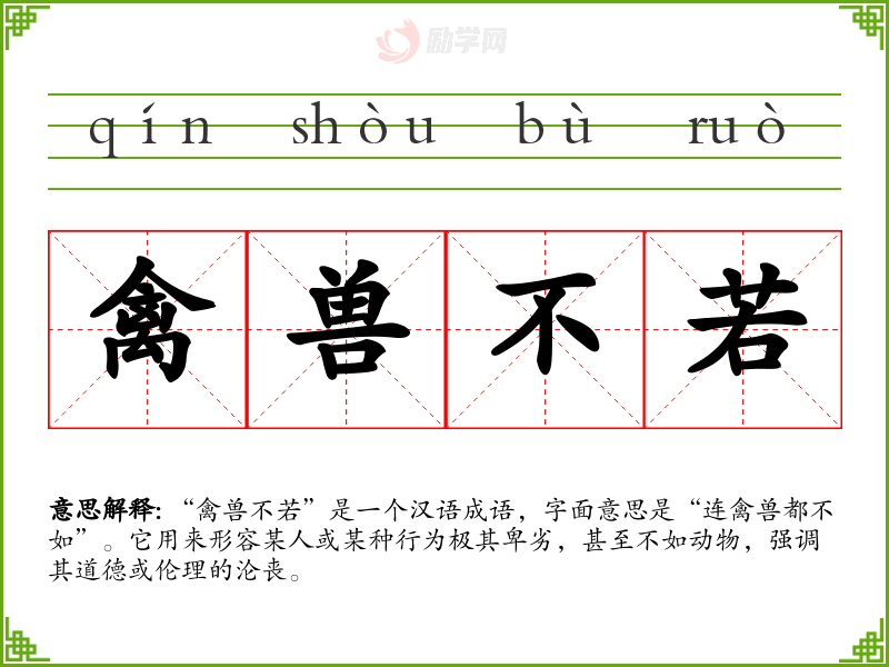“禽兽不若”是一个汉语成语,字面意思是“连禽兽都不如”。它用来形容某人或某种行为极其卑劣,甚至不如动物,强调其道德或伦理的沦丧。