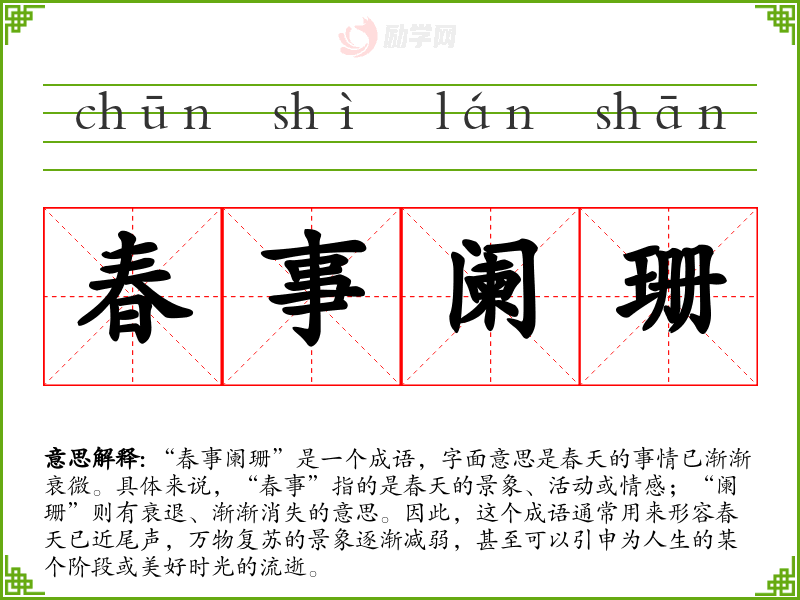 春事阑珊成语接龙
