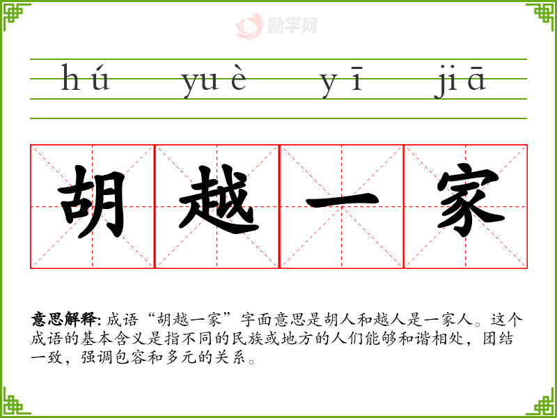 通过对“胡越一家”的学,我更加理解了文化多样性的重要性,以及在多元社会中促进团结与和谐的必要性。这一成语在我的语言学和表达中提供了深刻的思考,鼓励我在交流中更加注重包容和理解。