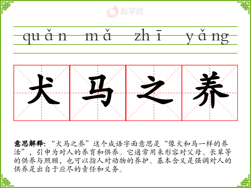 - 孝道是中华文化的重要组成部分,犬马之养不仅是责任,更是爱的体现。