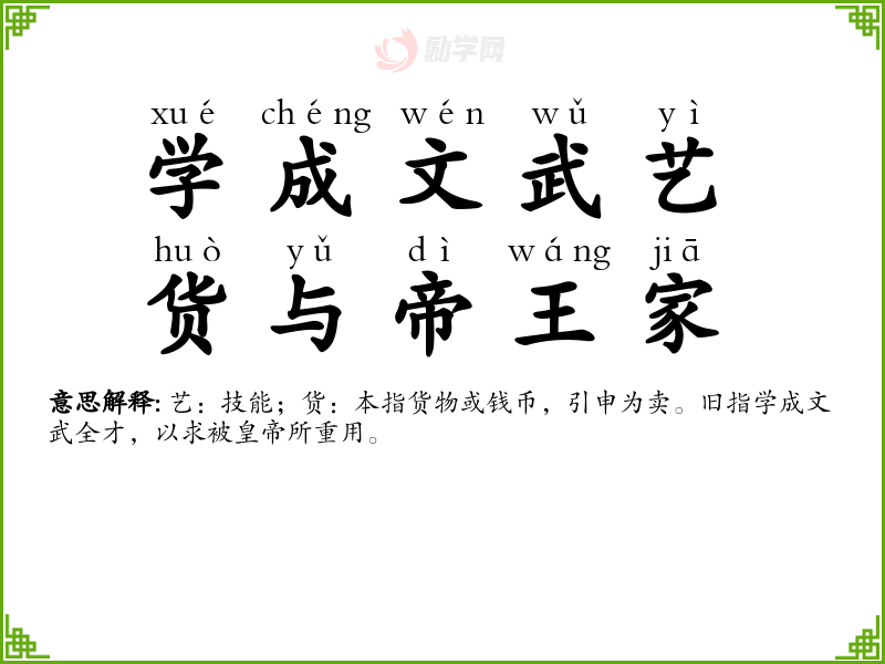 学成文武艺,货与帝王家字义分解