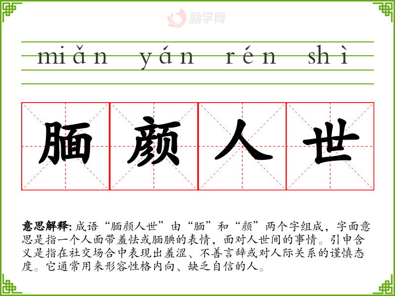 腼颜人世字义分解