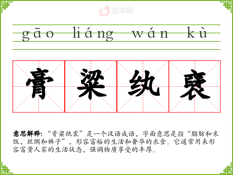 膏粱纨裦字义分解