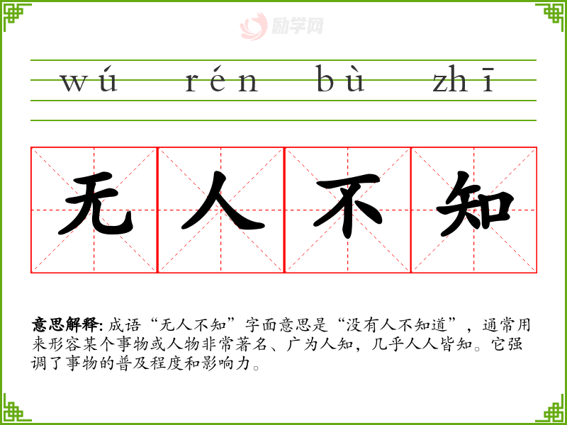 成语“无人不知”字面意思是“没有人不知道”,通常用来形容某个事物或人物非常著名、广为人知,几乎人人皆知。它强调了事物的普及程度和影响力。