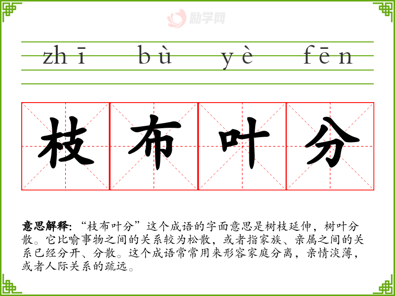 枝布叶分成语接龙