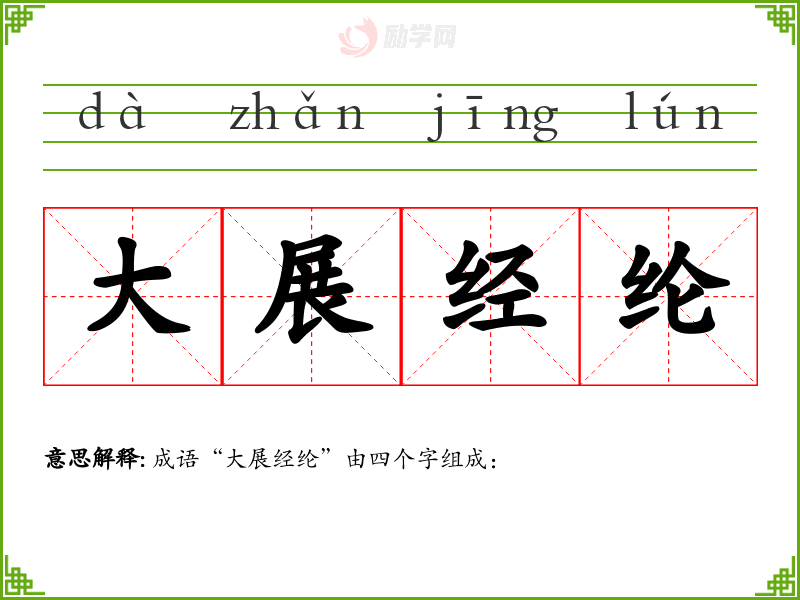 通过对“大展经纶”的学,我对这个成语的理解加深了。它不仅是对个人才能的认可,也反映了社会对智慧和能力的重视。在语言学中,掌握这样的成语,能更好地表达思想和情感,提升语言表达能力。