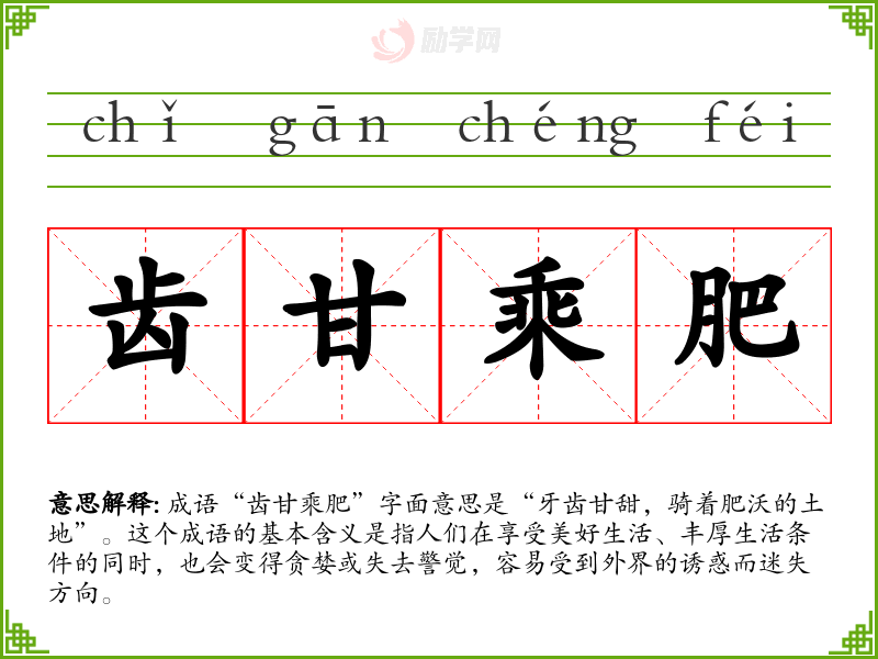 通过对“齿甘乘肥”的学习,我更加深刻地理解到在享受生活的同时,保持内心的警觉与追求是多么的重要。这不仅丰富了我的语言表达,也在我的生活态度上起到了积极的引导作用。