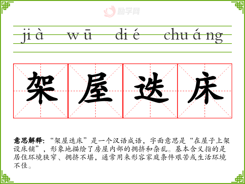 通过对“架屋迭床”的学,我认识到这个成语不仅仅是对空间狭小的描述,更是对社会底层生活状态的深刻反映。在语言学和表达中,了解成语背后的文化和情感意义,可以丰富我们的表达方式,使交流更具深度。