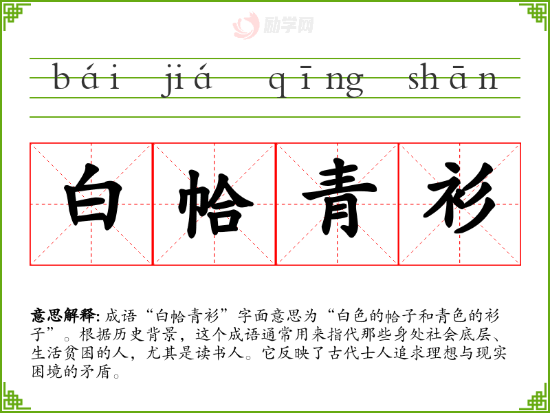 通过对“白帢青衫”的学,我深刻理解到它不仅是一个描述贫困与理想的成语,更是对奋斗精神的赞美。它在我的语言学和表达中,提醒我要关注社会底层的声音,传播积极向上的力量。