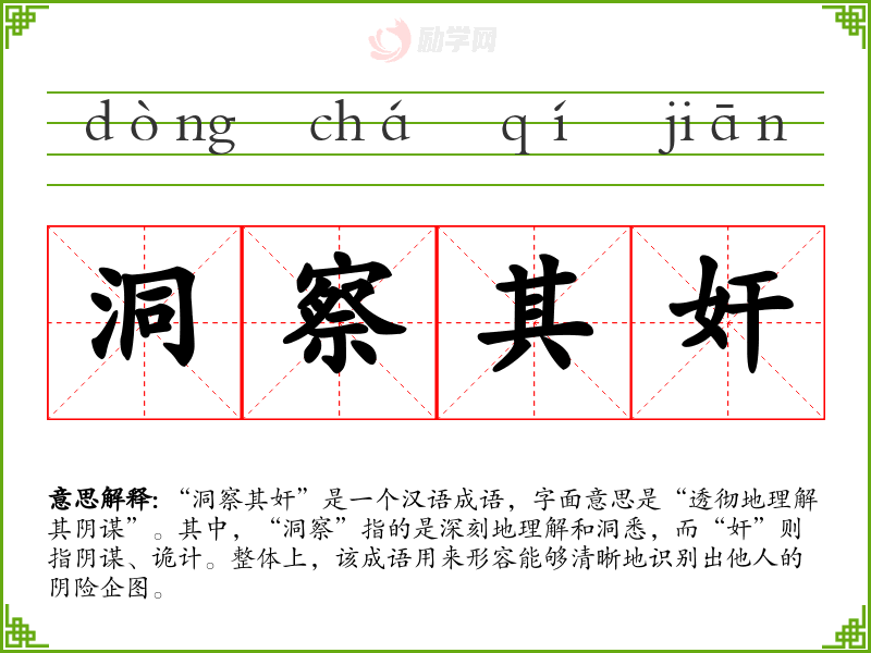 “洞察其奸”给人一种警觉和机警的感觉,能够引发对人性复杂性的思考。同时,它也提醒我们在日常生活中保持一定的警惕,避免被他人的阴谋所蒙蔽。