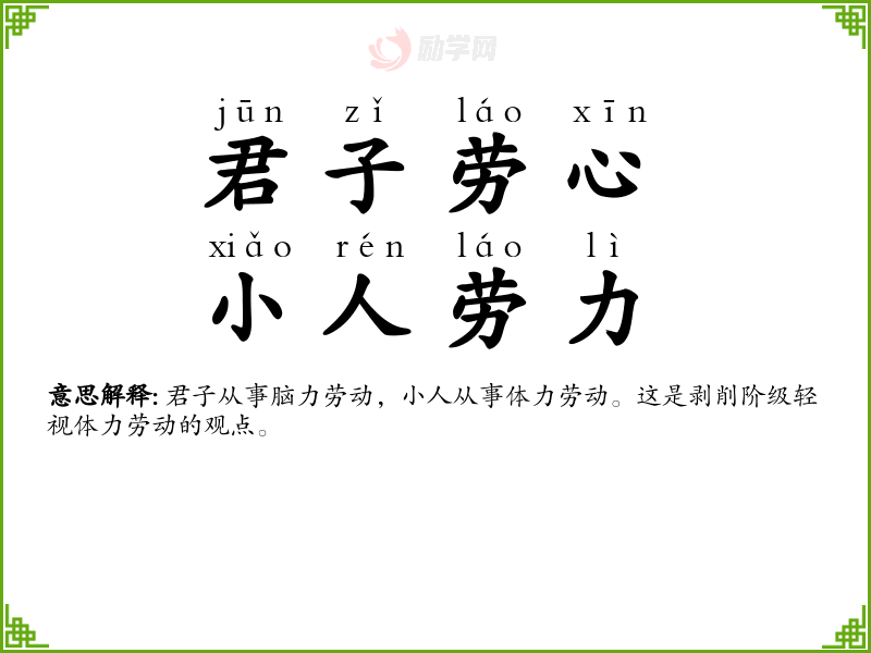 君子从事脑力劳动,小人从事体力劳动。这是剥削阶级轻视体力劳动的观点。